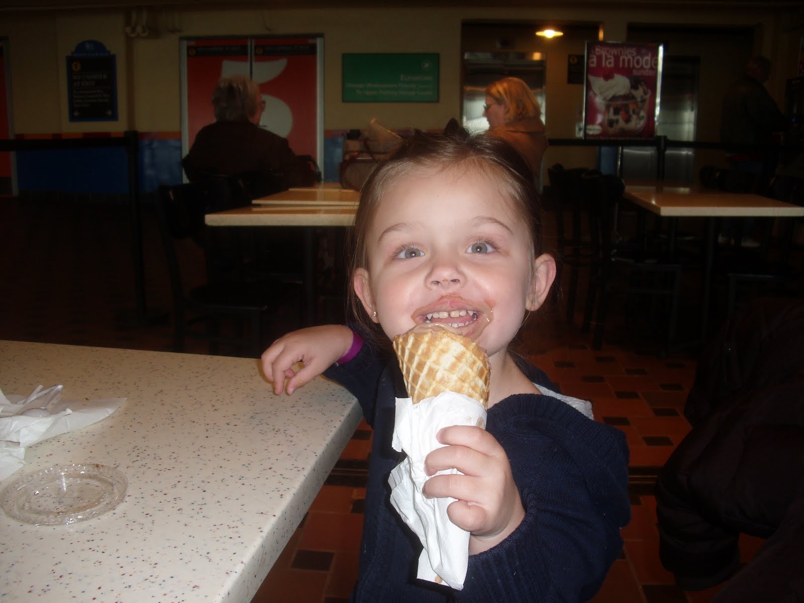 This past weekend we took a trip to Chicago. We had lots of fun but it was pretty chilly in the windy city. We knew it was going to be but we always plan trips and never actually go so this time we actually went which was good because my best friend from college and her husband live there but are moving in Aug. so we had to spend some time with them before they move farther away. We left on Saturday morning and 6 hours later picked up Chrissy and went to the Museum of Natural History, we all had a good time. We then went to Chrissy and Ross's and ordered deep dish pizza (yummy)although our favorite pizza place closed and we tried 2 others, none even close to as good, so maybe next time. Sunday we went the Chrissy's for breakfast and than over to the Willis Tower, but Eva stayed for a nap. Chrissy will some day be a great mom. Chrissy and Eva picked us up after the tower excursion and we went to Navy Pier for the afternoon, there we walked around and played at the Largest Children's museum ever. The girls and Evan had a great time. :o) We then went to Chrissy's to say goodbye to Ginsy who was their puppy - Eva and Ella's favorite toy! Poor dog..they chased her around like crazy. We went out to eat and than back to the hotel for some swimming. Ella really had fun but Eva was too tired and it was kind of cold plus the hot tub was packed so no relaxing for Chrissy and Ross. Monday morning we got up and walked around our hotel which was close to the bean, we then picked up some pizza and hit the road. We drove all day and arrived home around 8pm, in time for a quick bath and bed. Eva was already showing signs of a cold, either from the weather, her sister last week, or the germs at the Children's museum. Whatever it was she had troubles sleeping but we all slept in until 8:30 which was really nice.